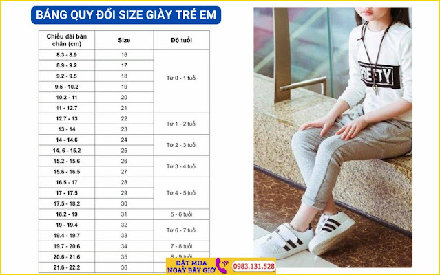 Bảng size giày Adidas Nhật dành cho trẻ em